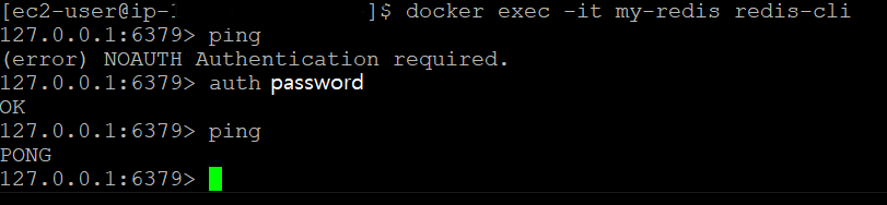 redis server 에 접속을 해 확인을 하면 NOAUTH Authentication required. 라는 에러가 나온다.